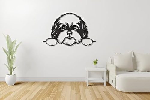 Lazoro Peeking Shih-Tzu Metal Wall Art Home Decor | Minimalist Laser-Cut Dog Metal Pet Wall Sculpture Wall Art Home Decor, Elegant, Durable, Charming Pet-Inspired Accent for Modern Homes