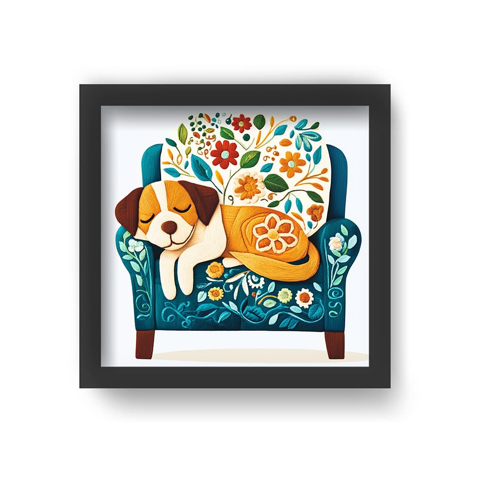 Paper Pajama Company Sleeping Dog Wall Art Framed Quilling Pet Artwork Floral Sofa Decor 10.5 x 10.5 Inch by Nav Nitika