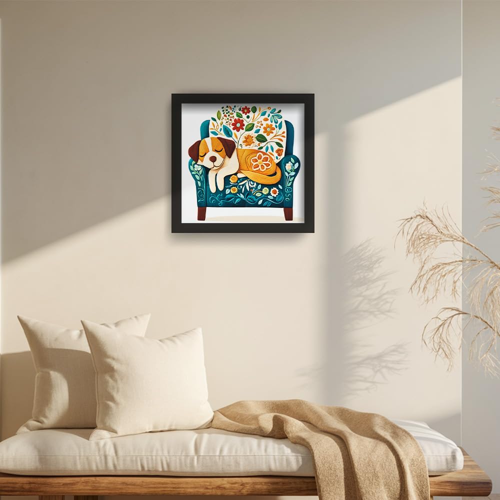 The Paper Pajama Company’s “Sleeping Dog Wall Art” by Nav Nitika exemplifies this perfect union. Measuring 10.5 x 10.5 inches, this framed artwork features an adorable sleeping dog surrounded by delicate floral quilling patterns, making it an ideal choice for pet lovers and art enthusiasts alike.