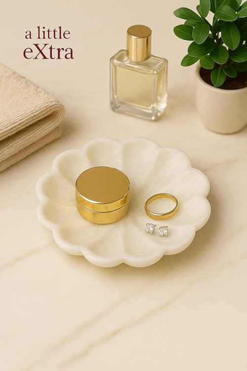 Little eXtra White Handicraft Marble Urli, Fruit Bowl- Decorative Key Bowl, Jewellery Display Bowl, Vanity Tray, Marble Decorative Platter for Home Decor, Housewarming Gift (15x15x4 cm)- Small