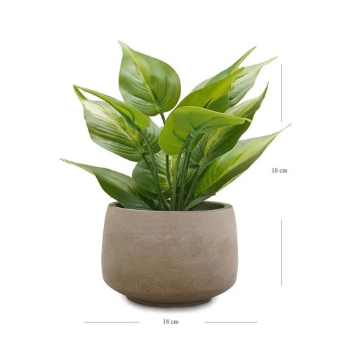Pure Home + Living Green Indoor Artificial Plant with Pot (Made of Plastic, Metal Wire) Fake Plants Small, Mini Decorative, Home Office or Gift Wild Artificial Plant with Pot. (18X18X18 CM) Pack of 1